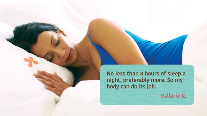 No less than 8 hours of sleep a night, preferably more. So my body can do its job.”