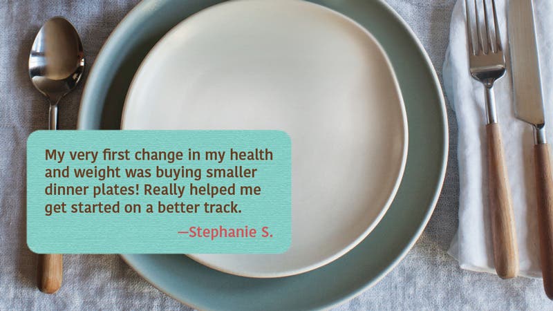 My very first change in my health and weight was buying smaller dinner plates! Really helped me get started on a better track.”