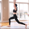 Come into High Lunge with your left foot forward and your feet about hip-width apart. As you inhale, straighten your legs and reach your arms overhead. As you exhale, bend your front knee and draw your hands to your hips in upturned fists. Inhale to return to High Lunge. Repeat for 1 minute. Repeat with your right foot forward for 1 minute. If needed, rest before switching sides.