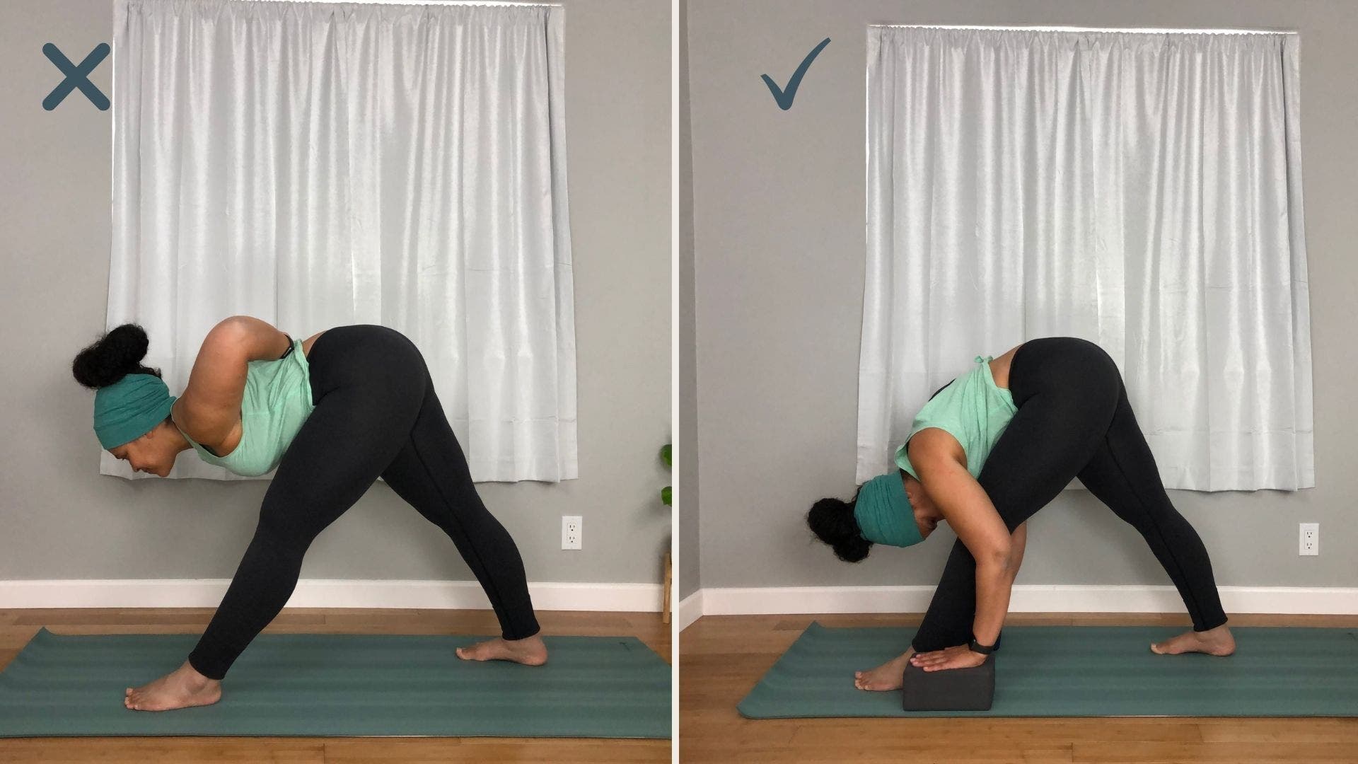 Why: The classic Pyramid Pose, with hands in reverse prayer, is similar to Humble Warrior in that it can teach us how to keep our hearts open when forces are trying to close it down. But, during periods where we want to stay closed, it can be comforting to stick to just the forward bend portion of the pose. Not only does this give you an opportunity to regain some strength, but it can feel quite comforting to fold in upon yourself.