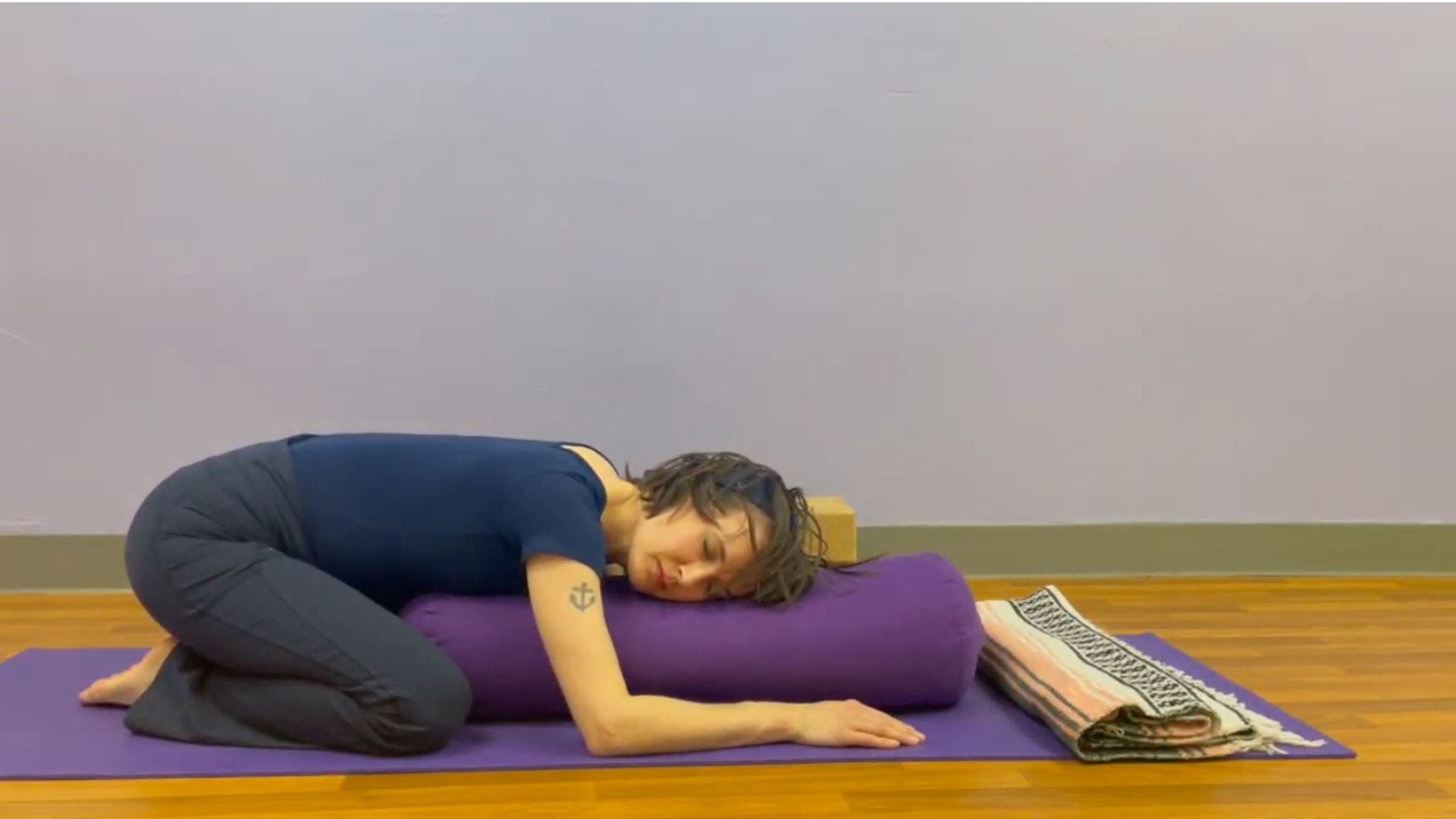 The same techniques won’t work for every student or even every time, so she offers an array of meditative focal points that you can try to help calm your mind during restorative yoga.