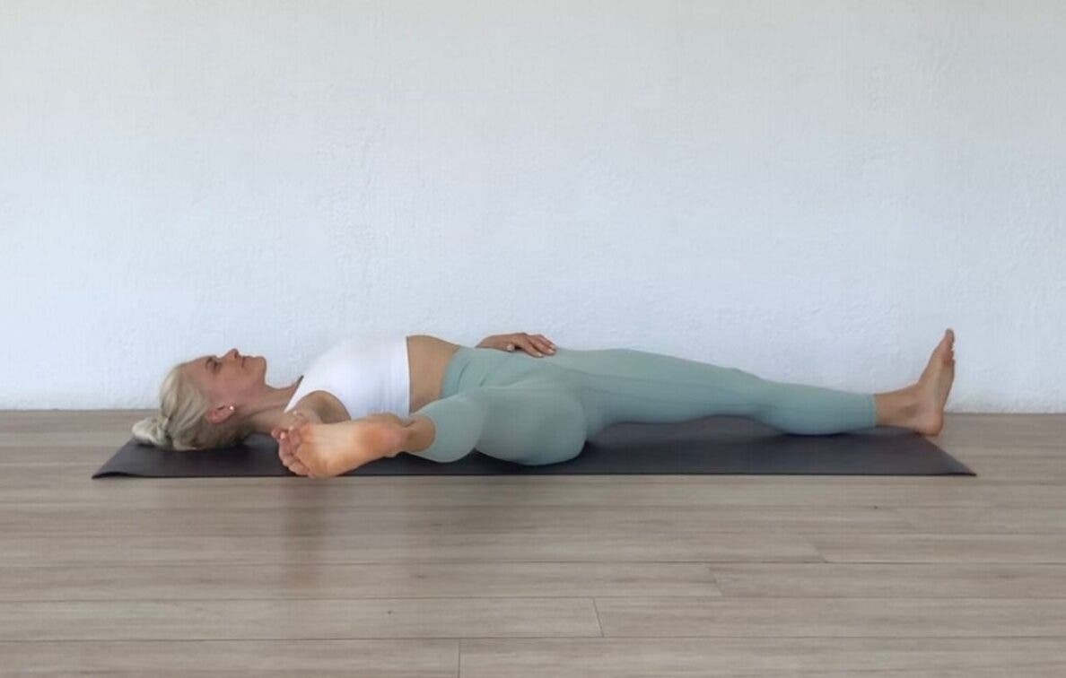 Start with the version of Triangle Pose that lets you practice the shape on your back, in a fully supported position. Then you slowly escalate the challenge through the various versions of Triangle. Take as long as you like with each—months, even. It’s the process of becoming more aware—of yourself, your body, your thoughts—as you learn that you want to experience, more than the pose.