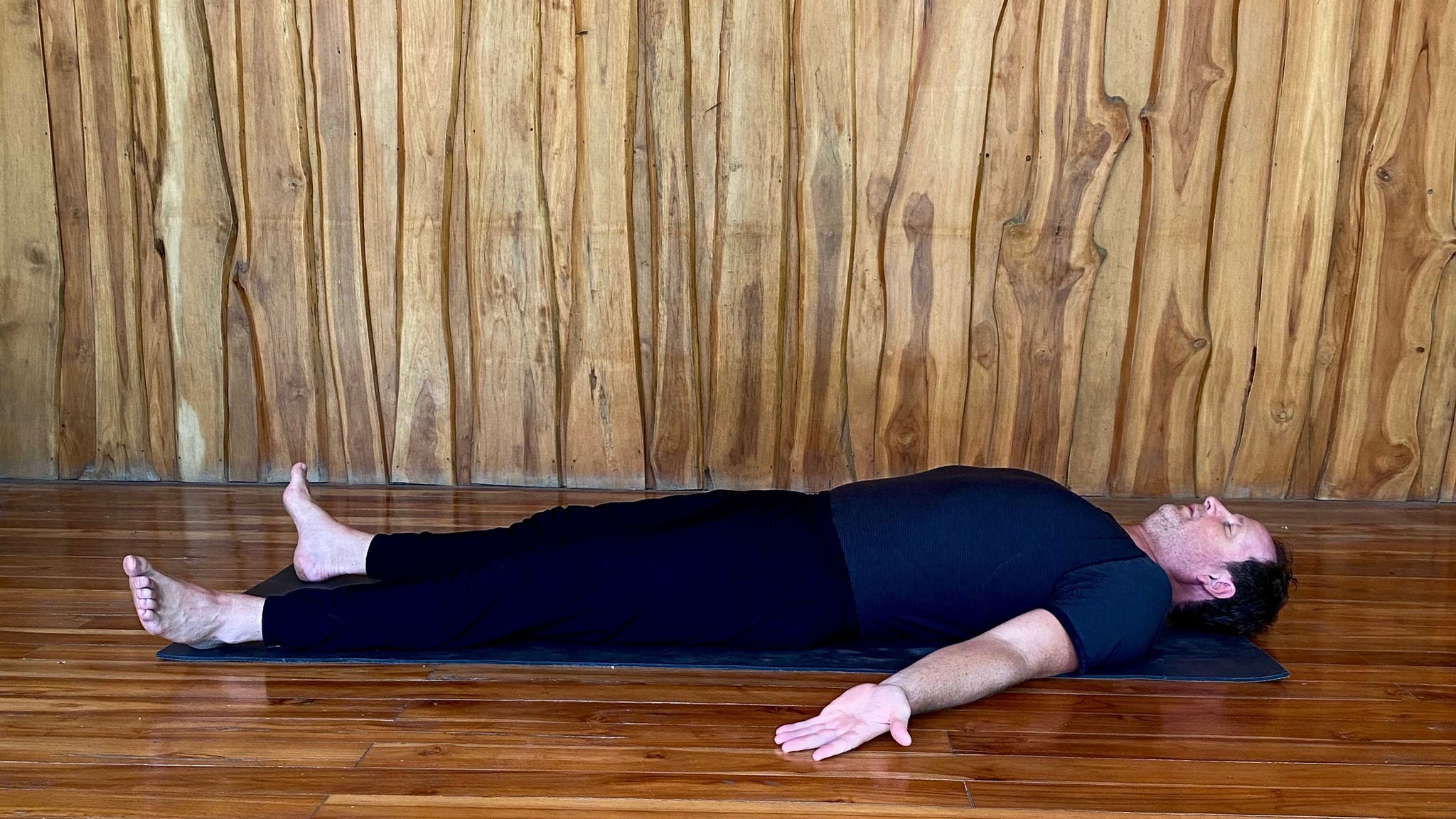 Lie on your back with your eyes closed. Surrender to gravity and to this moment. Stay for at least 5 minutes.