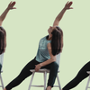 From Triangle, release your right hand down and face your hips and feet to the front of the mat. Bend both knees slightly. To come into Revolved Triangle Pose, twisting to the left, reaching your left arm up toward the ceiling with your palm facing away from your body. Reach your right hand outside of your outer left ankle or place it on the mat or a block.