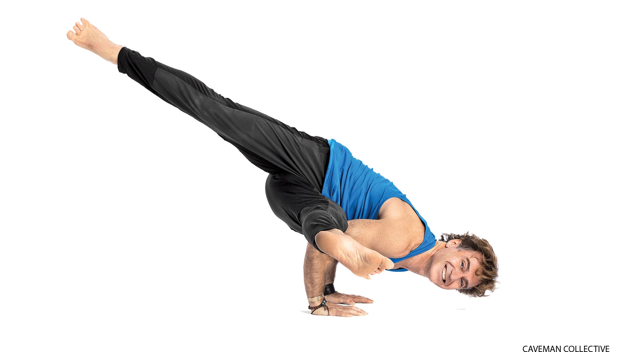 From Standing Pigeon (standing on your left foot), move your right hand forward a few inches and bring the sole of your right foot onto your right upper arm. Move your elbows in toward the midline as you lean slightly toward your left hand. Keep your right foot active and press through the left big-toe mound. Smile from deep inside as you work toward floating your left leg. Repeat on the opposite side.