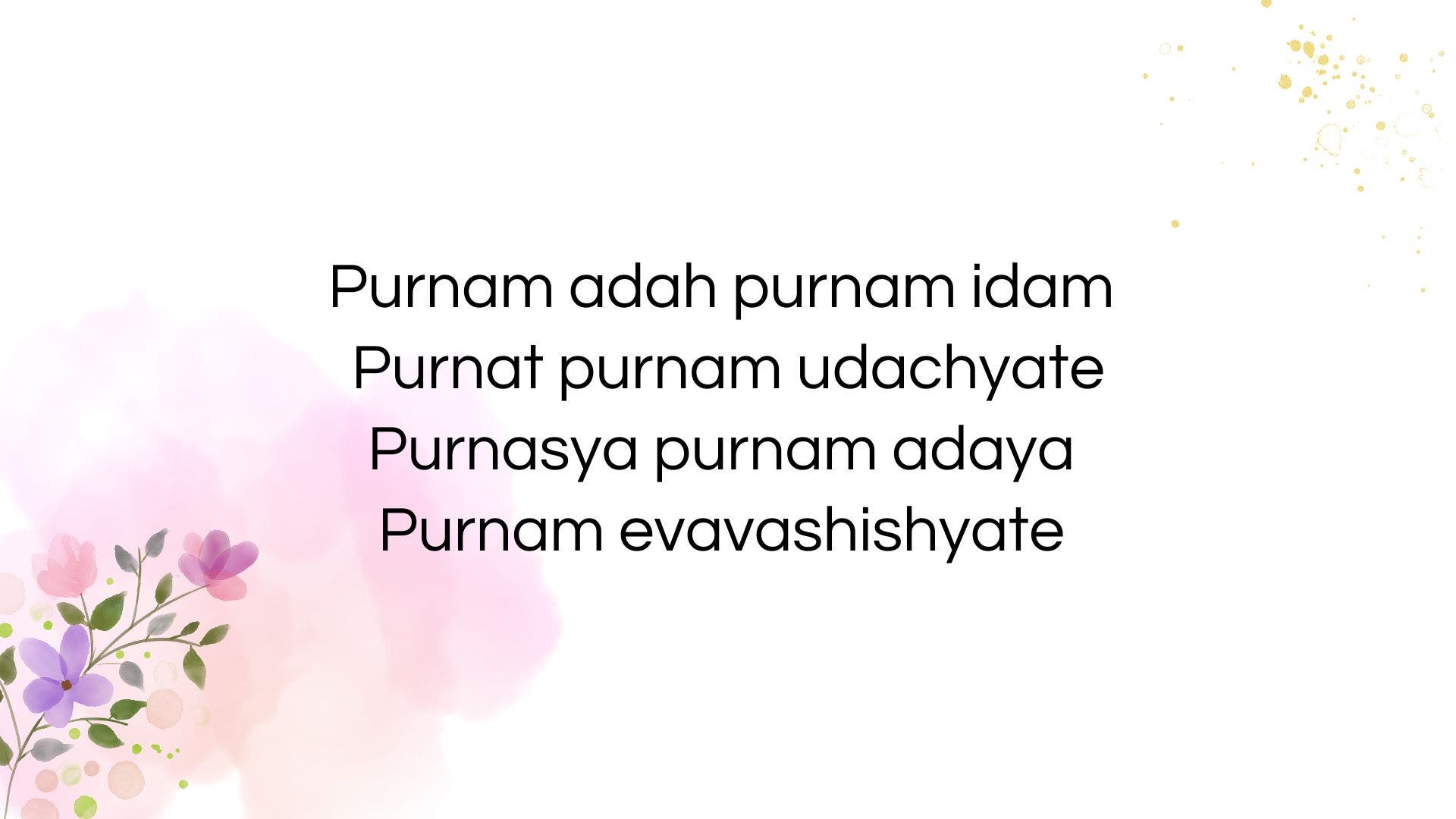 Pronunciation: purnam adah purnam idam purnat purnam udachyate | purnasya purnam adaya purnam evavashishyate