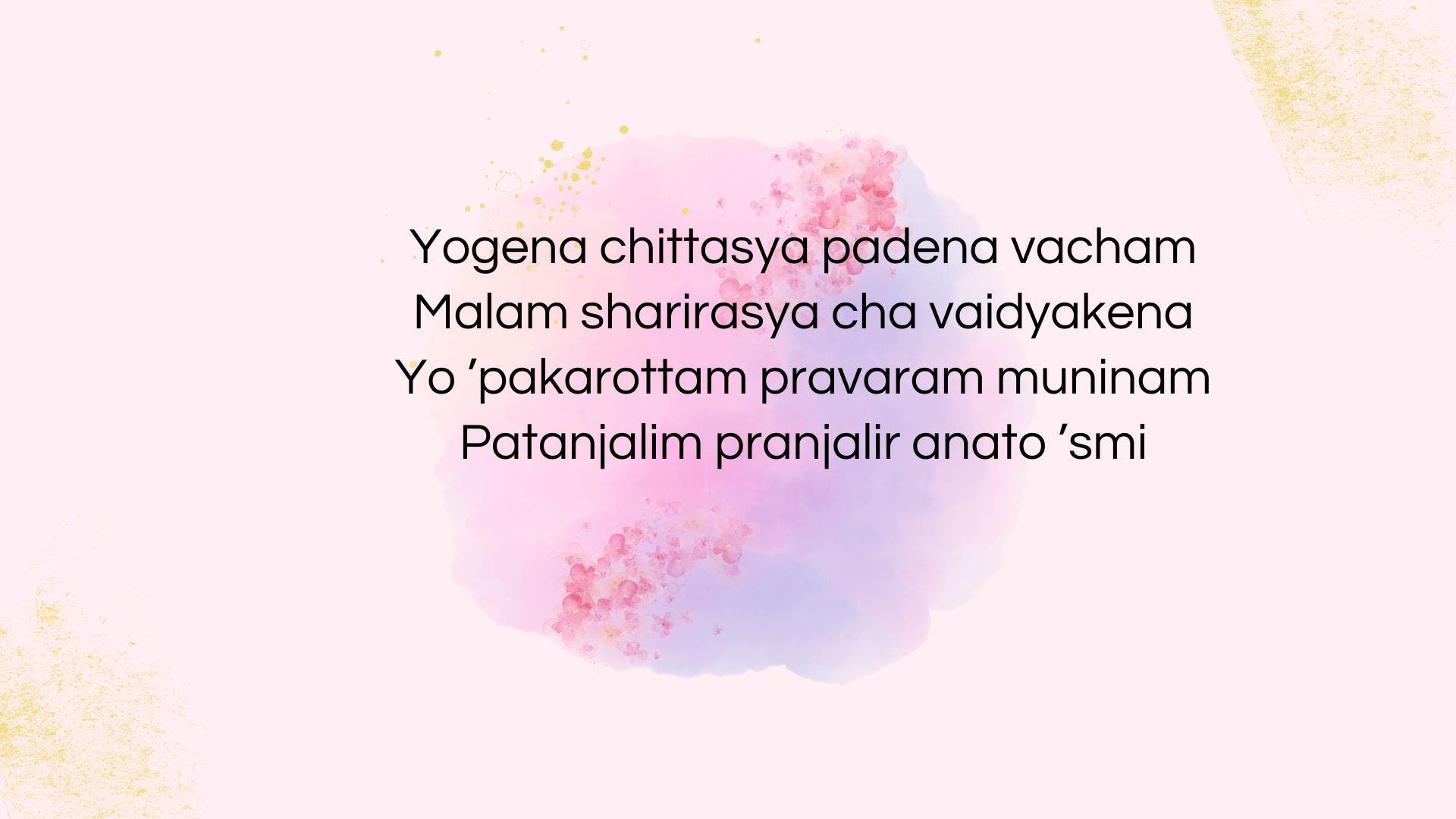 Pronunciation: yogena chittasya padena vacham malam sharirasya cha vaidyakena | yo ’pakarottam pravaram muninam patanjalim pranjalir anato ’smi
