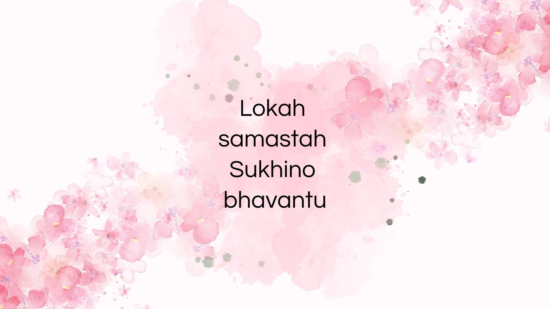 Pronunciation: sarvesham svastir bhavatu | sarvesham shantir bhavatu | sarvesham purnam bhavatu | sarvesham mangalam bhavatu