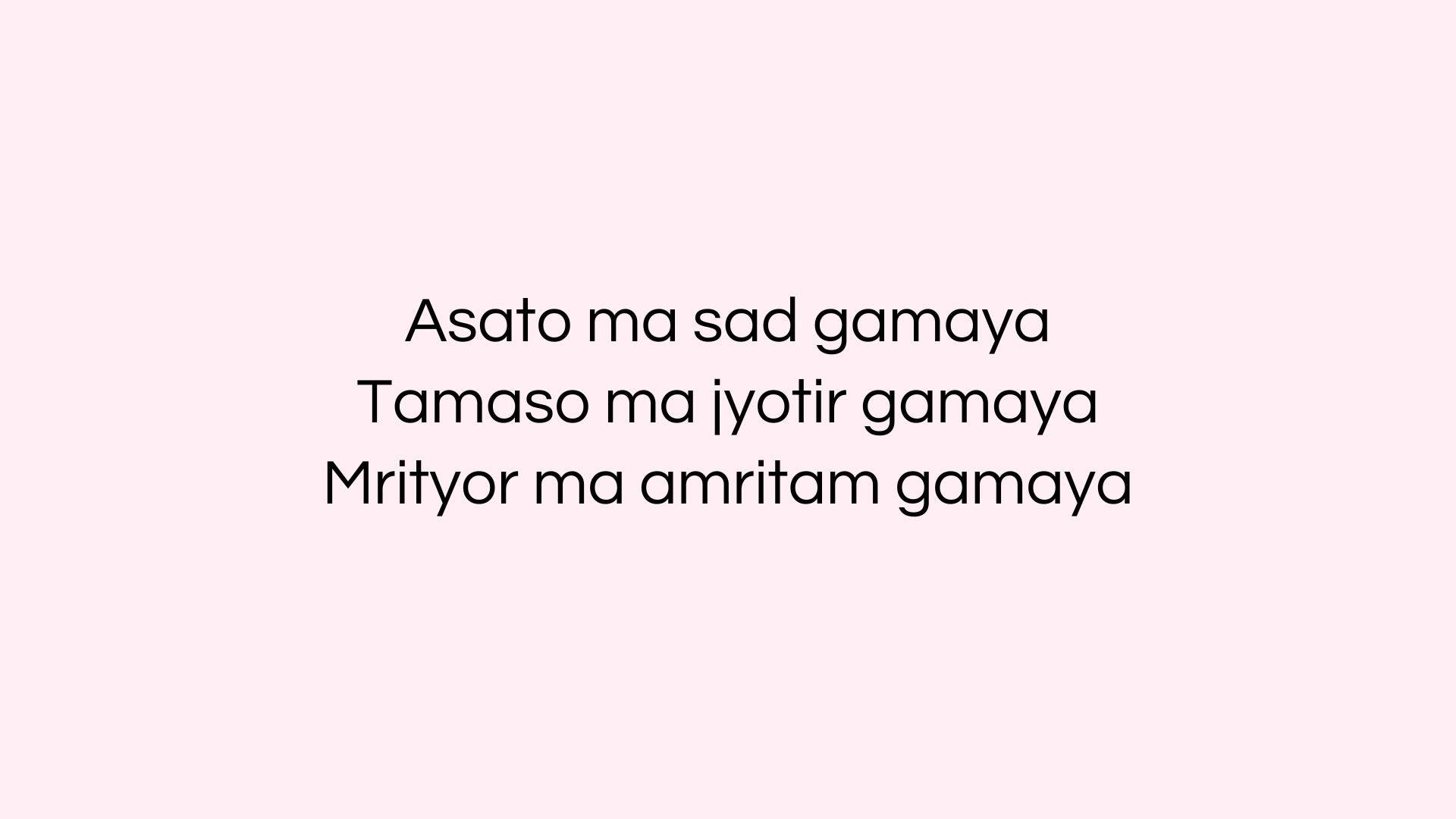 Pronunciation: asato ma sad gamaya | tamaso ma jyotir gamaya | mrityor ma amritam gamaya